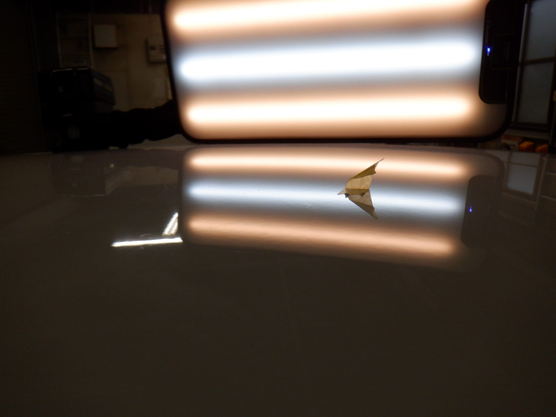 シャッタの映り込みも