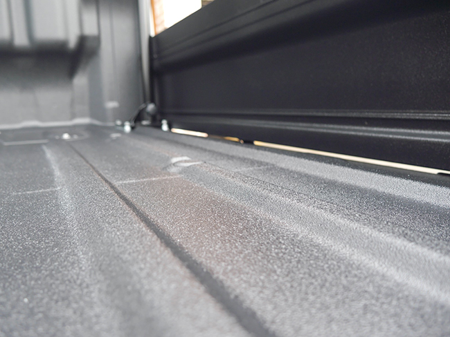 ルーフに厚塗りラプターライナー塗装を施す事により万一の積荷が落下した際の傷や汚れの軽減につながります。