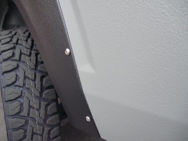 オーバーフェンダーはフロントとリアタイヤのフェンダーアーチに車検対応の社外部品を取付けてあります。ボルト部分はフェイク取付でボディには穴開け加工は行ってません。